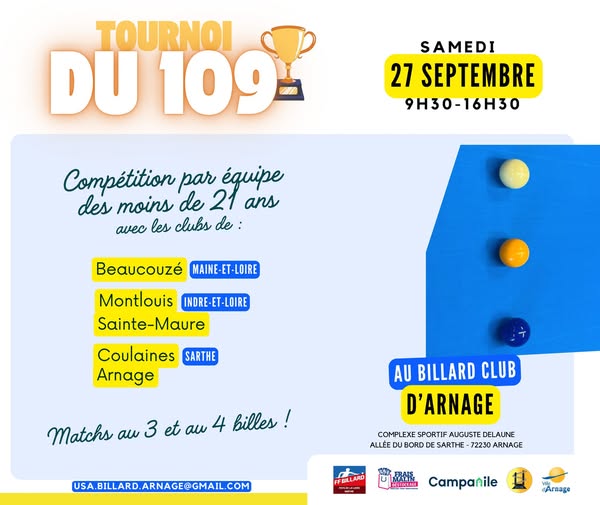 Dans moins de 10 jours, près de 25 jeunes joueurs et joueuses de billard se retrouveront à Arnage pour le Tournoi du 109, 3ème édition !
