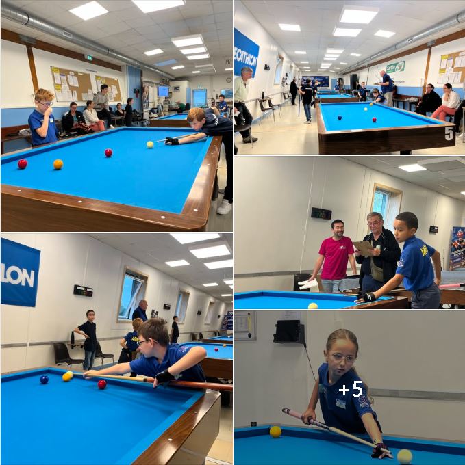 Des matchs au 3 et au 4 billes Des jeunes qui débutent au billard et jouent leur première compétition