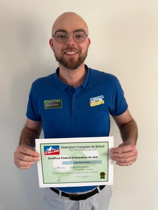 À l’issue d’une formation de deux jours à Villaines-la-Juhel, il rejoint le groupe des adhérents formés à encadrer, accompagner et promouvoir la pratique du billard.