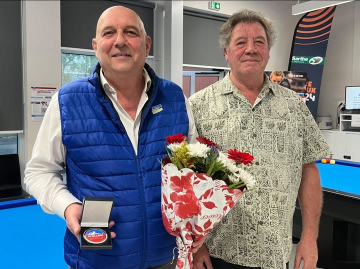 Remise par le président François Bello de la Ligue des Pays de la Loire, cette distinction reconnait ton investissement plein et entier dans le monde du billard, au sein des instances régionales et nationales.
