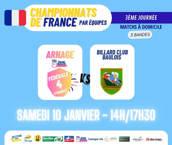 Cette année encore, le Billard Club US Arnage s’engage pleinement dans les Championnats de France 2025-2026